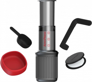The AeroPress Go is thoughtfully engineered to provide all the delicious brewing capabilities of the original AeroPress plus a convenient drinking mug that doubles as a carrying case. Like the original AeroPress, the AeroPress Go brews remarkably delicious filter coffee everytime.