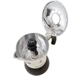 The first of its kind Mukka Express has already been met with wild enthusiasm in Italy, and it is popular globally. While the funtion of the Mukka Express employs the tradition of stovetop brewing, the top portion of the pot is filled with milk so that as the expresso enters the top chamber, it mixes with the steamed milk and within minutes 2 cups of cappuccino are brewed and ready to serve.