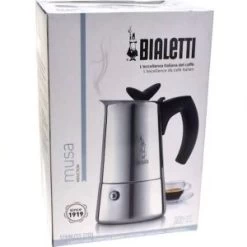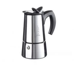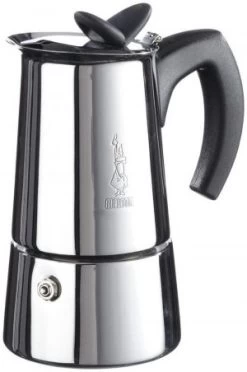 A sophisticated coffee maker distinguished by the clean lines of its design. The design is enhanced with details like the elegantly shaped knob to open the lid easily when hot; and the ergonomic, heat resistant Bialetti handle.
