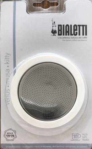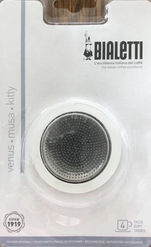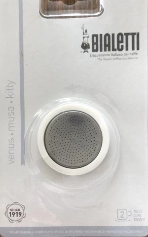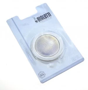 Seals and filters are available for all Bialetti moka pot sizes and are made from durable BPA-Free plastic and stainless steel. We suggest replacing your seal and filter every 3 months or when the seal wears.