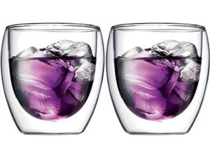 Here are the Bodum 8oz (236 ml) PAVINA double wall glasses. Designed for both hot and cold drinks – they’re great for everything from hot chocolate to your favourite cocktail. The double wall keeps hot drinks hot and protects your hands, and it keeps cold drinks cold without any condensation.
