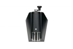 Brazil coffee grinder consists of a grinder and a base. The base holds product firmly at an ergonomic angle that makes grinding easy. You fill the coffee beans into the container by taking off handle and lifting up the lid. Set the grinder at your preferred coarseness. Fix the clear container onto the grinder by rotating/pressing. Place product in the base – fix the pin into the hole of the base. Place handle on the product. Now grind until all beans have been used. Brew your coffee – and enjoy!