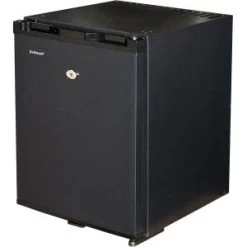 | Silent mini bar fridge for hotel motel or accommodation with auto defrost and narrow depth to fit tight areas. Also very popular for nursing homes and small room venues. Drinks fridge only as about 4?C to 5?C is best temperature. NOTE: The room temperature MUST not get above 25?C for this type of mini fridge to cool properly, it DOES NOT have a compressor. NOT suitable at all for alfresco or anywhere that room environment is not controlled. |