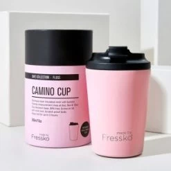 The Camino Fressko cups are the true modern definition of style meeting sustainability. The stylish, chemical-free, lightweight, insulated stainless steel reusable coffee cup is the new and improved version of the classic takeaway cafe cup. The iconic Fressko coffee cups are synonymous with its vacuum sealed, scratch-resistant, spill proof and easy to clean lockable lid. Perfectly fitting under the baristas machine and capable of staying hot up to 3 hours, it is the ideal take away coffee cup.