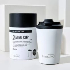 The Camino Fressko cups are the true modern definition of style meeting sustainability. The stylish, chemical-free, lightweight, insulated stainless steel reusable coffee cup is the new and improved version of the classic takeaway cafe cup. The iconic Fressko coffee cups are synonymous with its vacuum sealed, scratch-resistant, spill proof and easy to clean lockable lid. Perfectly fitting under the baristas machine and capable of staying hot up to 3 hours, it is the ideal take away coffee cup.