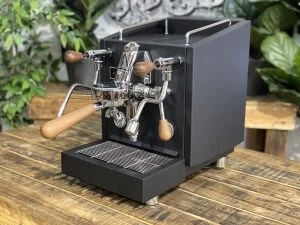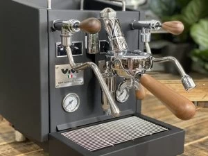 Izzo was founded in Naples in 1979 by Vincenzo and has been producing high quality and exceptional espresso coffee machines for over 40 years and the Izzo Vivi Duetto PID lives up to their brand name. This 1 group machine has a 2L built in water tank meaning that the machine is completely self contained, and you do not require plumbing to make excellent coffee. The Vivi Duetto is a dual boiler machine, which has been paired with PID controls and shot timers to ensure that the home barista can continuously and consistently produce amazing coffee, in the comfort of their own home. The PID will also go a long way in keeping your shots and temperature super consistent. This stunning machine has a beautiful black body and has been paired with Italian walnut timber accents. These amazing extras add a flare of sophistication and style to an already stunning machine.