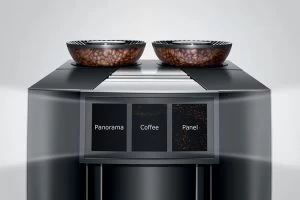 For maximum professionalism, the GIGA 10 features not just one but two high-performance grinders made of a long-lasting, high-quality ceramic material. Two bean containers with an elegant turbine look are each connected to a separate grinder, allowing you to choose the ideal type of coffee or the optimum blend for every cup. For example, you might choose a more intense, dark roasting to make an aromatic espresso and a medium roasting for a mild lungo or coffee with milk.