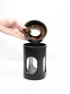 Use is as simple as pouring a measure of your choice of green coffee beans into the roasting chamber, choosing your roast level according to how dark you like it, and pressing start. The pre-set roasting profile does the rest and in 15 minutes you will have a batch of gorgeously aromatic, fresh-roasted beans – 100g, enough to make around 6 espresso double shots or 10 cups of plunger coffee.