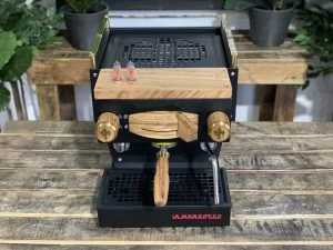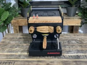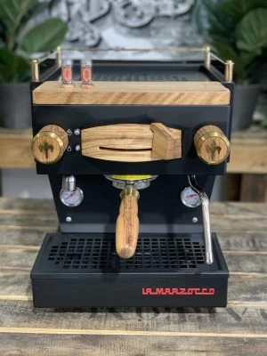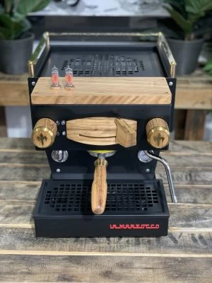 The La Marzocco Linea Mini has long been considered a favourite in the coffee industry and when you look at this beautiful custom painted matte black Linea mini with its beautiful timber and brass accents, it is clearly easy to see why.? Not only does this custom Linea Mini look spectacular, but it also houses amazing features. This compact 1 group houses a dual boiler system, PID temperature controls wifi connectivity and a powerful rotary pump. This rotary pump allows the Linea Mini to be connected to water mains and ensures a quiet brewing process, this machine is also equipped with an in-built 2.5L water tank, which makes it completely self-contained. As an added benefit, this particular machine has also been paired with a full custom timber kit with an Edison bulb shot timer and brass cup tray rack to add an extra touch of style and warmth to an already beautiful machine. The La Marzocco Linea Mini is perfect for anyone who loves producing great coffee and can be ordered in a wide variety of colours and fully customised to meet your needs.