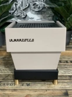 The Linea Mini is in a class of its own when it comes to a home domestic espresso coffee machine. It is what every barista dreams about owning, even if they do not know that themselves. Designed after the much loved La Marzocco Linea Classic in 2015, this new domestic coffee machine took home coffee to whole new heights. This compact dual boiler comes with a simple, elegant and resilient body that can be fully customisable. This beautiful machine comes with an internal freshwater tank, meaning that it is fully self containable. However, the Linea Mini also houses a powerful rotary pump, meaning you can also connect this machine directly to mains water. This stunning machine has been custom painted in a beautiful sand colour and equipped with custom timber and gold La Marzocco handles, levers and manual paddle. This machine stands out as a thing of beauty and does not only look amazing, it will also make top quality coffee.