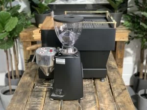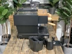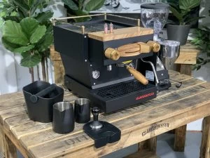 La Marzocco has long been considered a favourite in the coffee industry, and it is easy to see why. This beautiful Linea Mini comes paired with dual boilers, PID temperature controls and Wifi connectivity. These features work together to ensure that the home barista can always create and customise their coffee and produce consistent espresso, shot after shot. This machine has also been paired with a powerful rotary pump, and an in-built freshwater tank, meaning it can connect to water mains and run fully self-contained. As an added benefit, this already outstanding machine has been custom painted in matte black and paired with a full timber and brass kit, with additional shot timers. This fantastic machine has also been paired with the brand new Mazzer Mini E to allow the home barista access to fresh coffee, shot after shot. This great grinder houses 64mm burrs and is perfect for consistent coffee, shot after shot. As an added benefit, this package also comes with a yellow 300ml & 600ml coffee accessories matte black milk jug, a 58mm tamper, a tamper mat and a knock bin. This is a great set-up for making fantastic coffee.