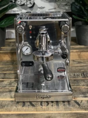 Magister is an Italian manufacturer that has been producing professional espresso equipment since 1997 and pride themselves on providing the market with machines and grinders with stylish designs and high functionality. The Magister Stella Professional takes all these features and combines them in a machine for home. The Stella Professional comes equipped with a beautiful exposed E61 group head and manual activation. Pairing this with a cool touch steam wand and an in-built fresh water reservoir makes this machine ideal for producing fantastic coffee in the comfort of your own home, and with its compact design this machine is suited for any household.