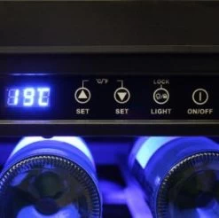 | Twin zone beer and wine fridge designed for indoor quiet applications. Slide out shelving and nice soft LED lighting make it a nice little addition to your home entertaining area. *Note that shelving is designed for the standard 78-82mm Bordeaux bottles |