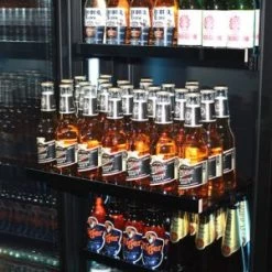 | Classy upright quiet running bar fridge designed especially with a shallow depth for areas where space is a premium. Unit is front venting and design to be free-standing OR built into a cavity, it comes with special brackets to attach to the wall for stability. Electronic control temp 1 > 18oC. It has the highest quality inverter driven EMBRACO brand compressor that is excellent for low energy usage when cooling and the ‘dimmable’ 5 x LED light colour choices of white, red, orange, blue or green make a great feature. Reversible door with lock and triple glazed LOW E glass helps prevent condensation. ** Remember brackets come with unit to secure to wall – being so shallow it has small chance to topple if empty and opening door ** |