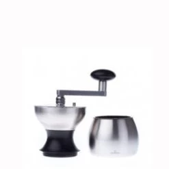 The Caracas grinder is designed to look very modern, built entirely from stainless steel and crisp acrylic. The hourglass shape of the grinder makes it easy to grip and hold while grinding. The grinder?s 60g hopper can be topped with a lid to keep beans from flying out while you?re grinding, and the handle is far enough from the body to make for a comfortable grinding experience.